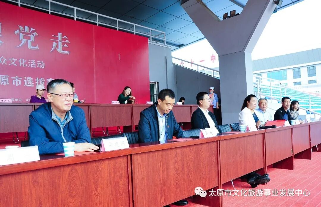 广场舞简单易学,集健身、娱乐、观赏为一体,受到广大群众的喜爱和欢迎。9月17日,为进一步推进山西省群众文化服务品牌项目发展,推广优秀广场舞,由太原市委宣传部、市文旅局主办,市文旅事业发展中心指导,万柏林区委宣传部、文旅局、文化文物旅游保护发展中心承办的“永远跟党走”2021年全省群众文化活动广场舞大赛太原选拔赛在万柏林体育场举行。来自全市各县区选送的10支代表队参加了比赛。省文旅厅公共服务处副处长马超、省文化馆副馆长李日泉、市委宣传部二级调研员宋建国等7位领导及众多业界专家出席了本次活动。万柏林区副区长白洁发表了讲话。