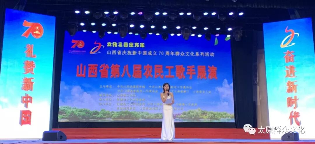 由中共山西省委宣传部、中共山西省直属机关工作委员会、中共山西省委教育工作委员会、山西省文化和旅游厅、山西省总工会主办,山西省文化馆指导的以“礼赞新中国 奋进新时代”为主题的山西省庆祝新中国成立70周年群众文化系列活动省级示范活动自6月份启动以来,目前已进入决赛、展演阶段。
