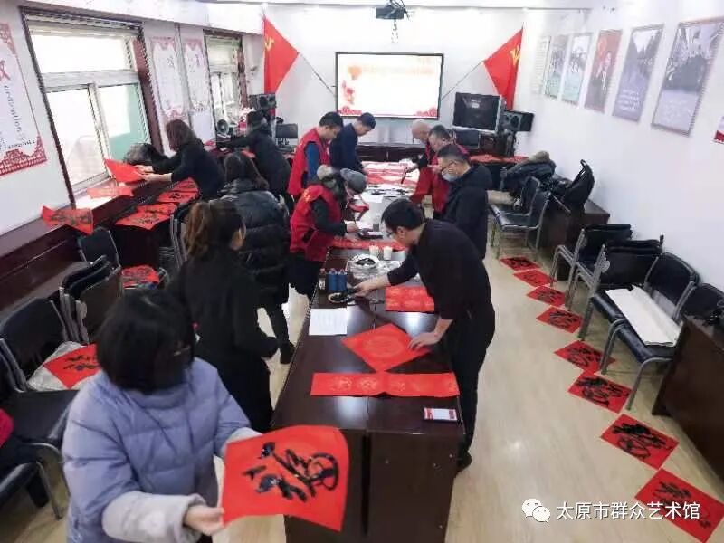 为弘扬中华传统文化,营造喜庆祥和的节日氛围,2月4日,正值农历小年,太原市文化旅游事业发展中心(市文化馆)组织书法老师走进西矿街社区,义务为辖区内居民书写春联,送去新春祝福,为即将到来的牛年春节增喜添福。